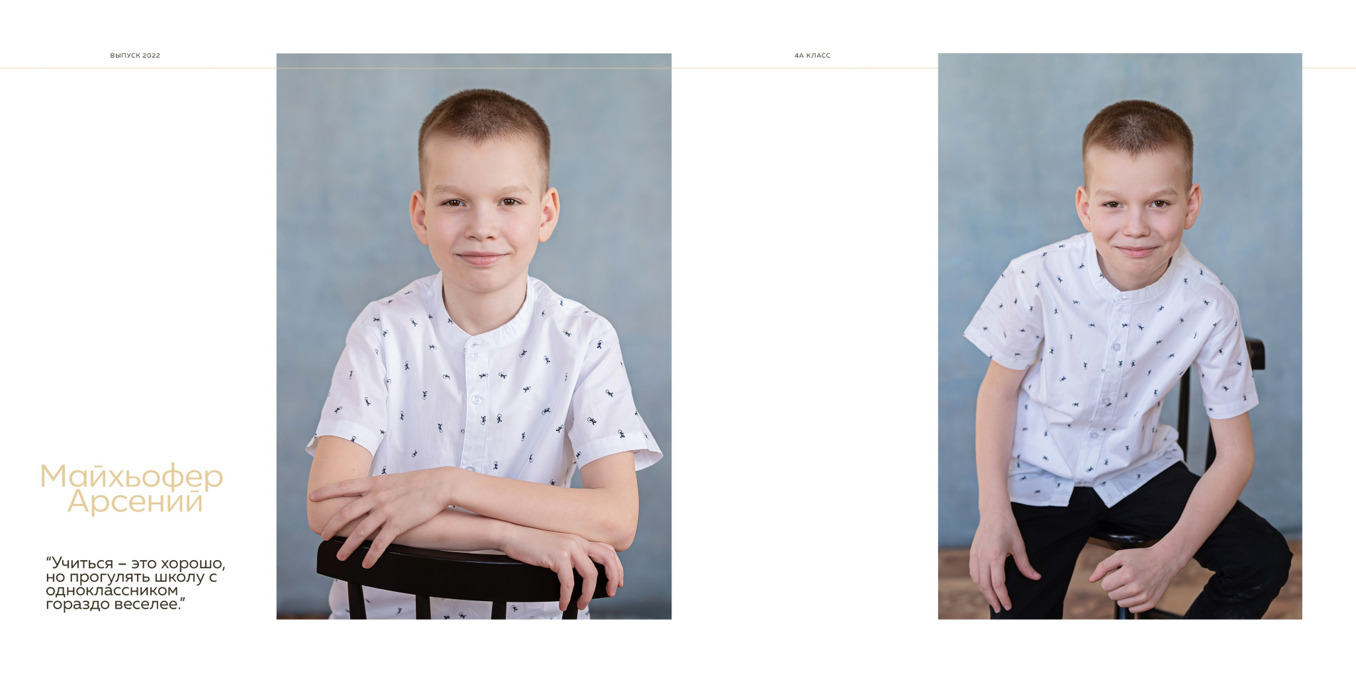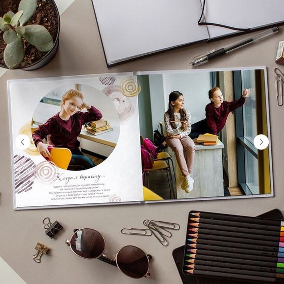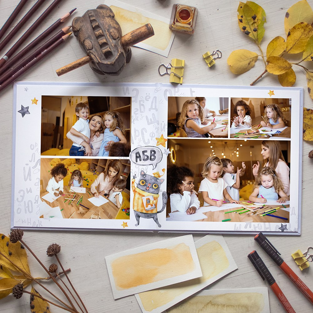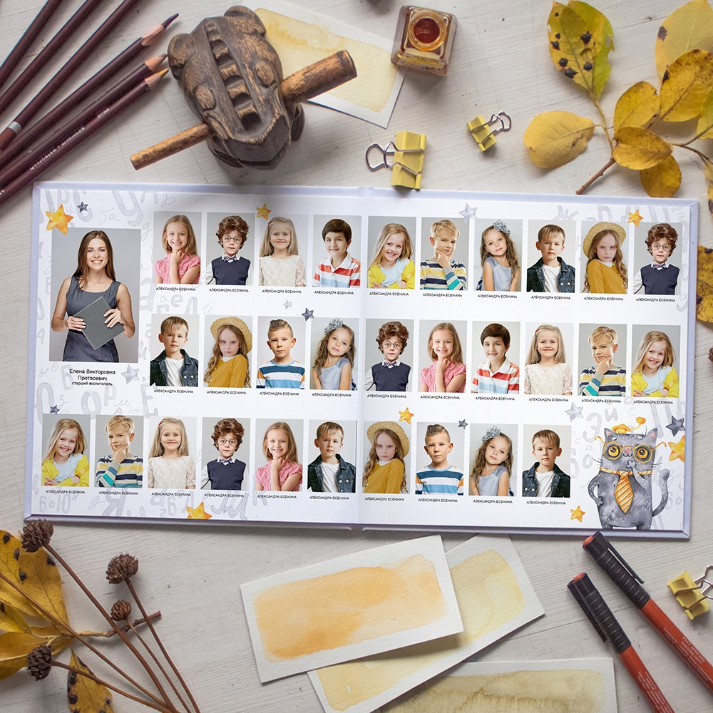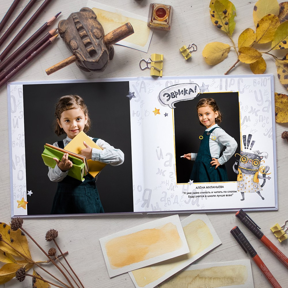 Это уникальная коллекция ярких моментов начальной школы вашего ребенка. Красивые фото, личные пожелания друзей и теплые воспоминания в элегантном дизайне. Сохраняйте детство профессионально!