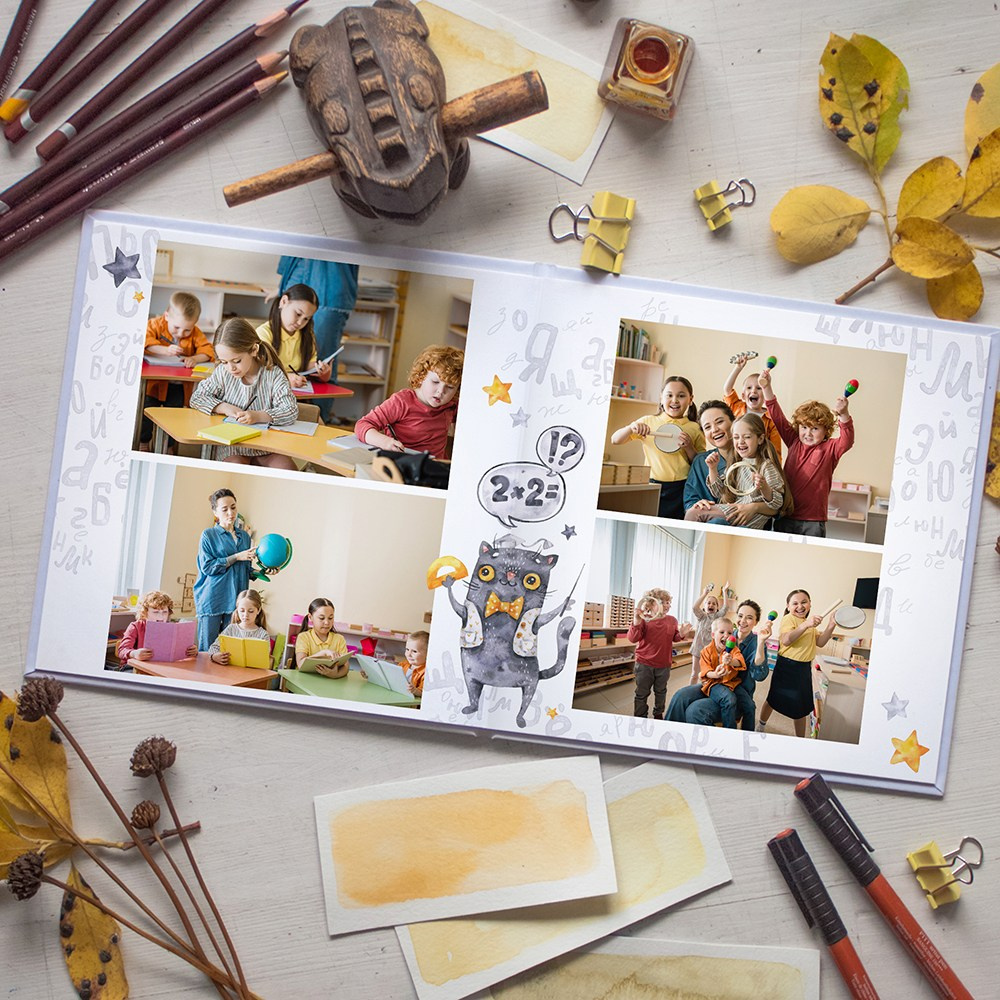 📚 Сохраняйте самые яркие моменты школьной жизни вашего ребенка! Мы предлагаем красочные фотокниги, созданные специально для учеников младших классов. Каждая книга — уникальное воспоминание, наполненное радостью первых уроков, веселых перемен и школьных праздников.